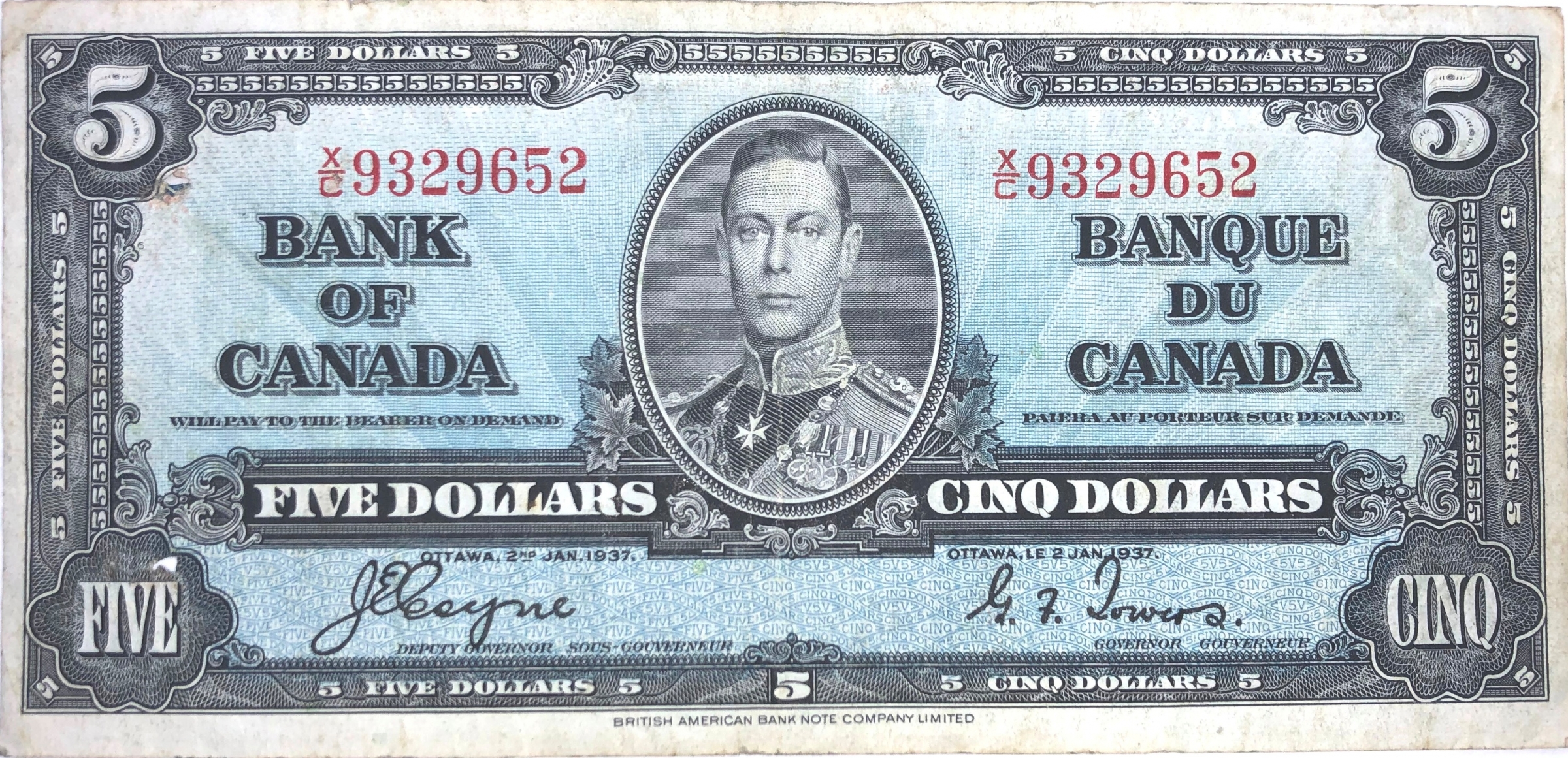 5 CAD 1937 The Bank of Canada